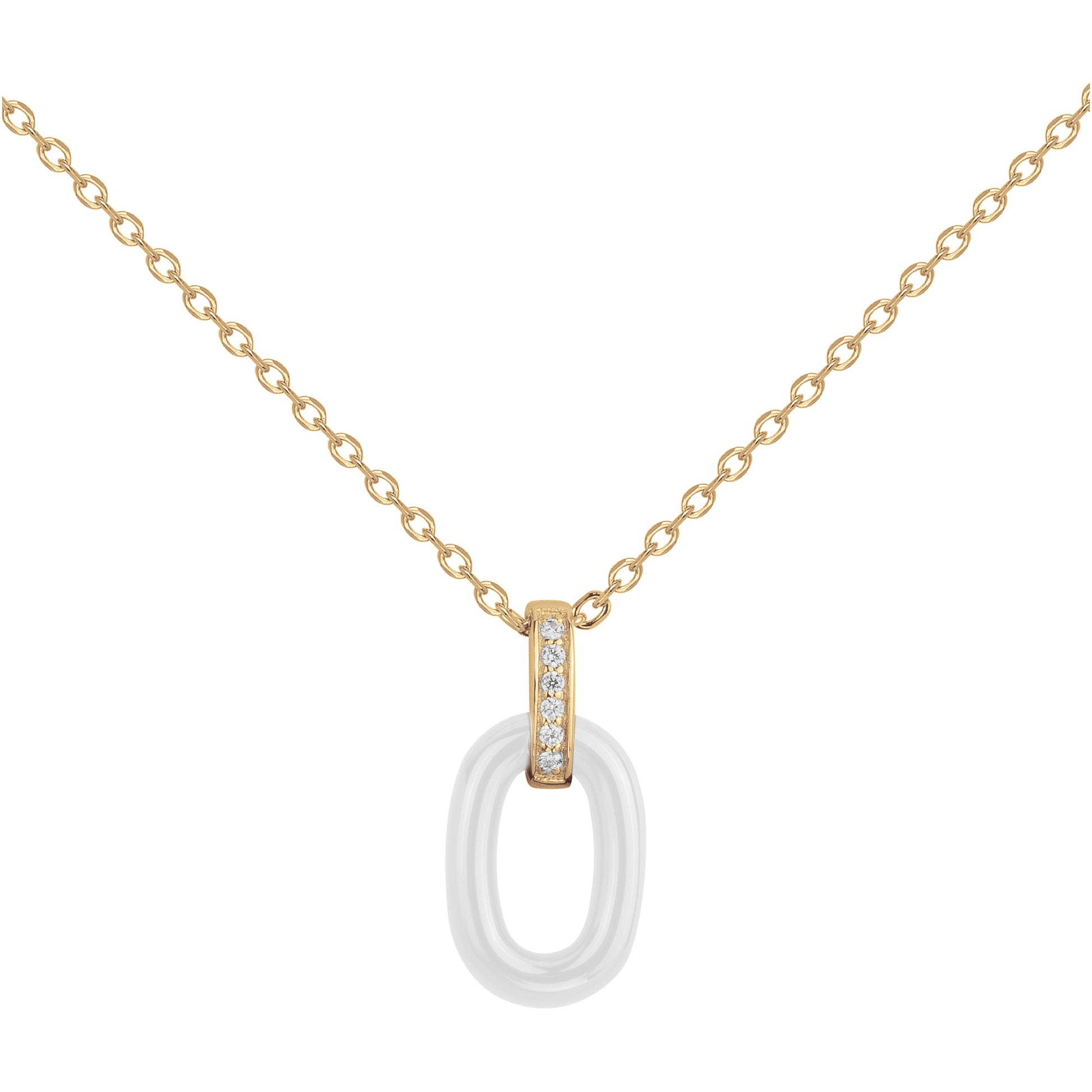 COLLIER PLAQUE OR 3 MICRONS CERAM.BLANC ET 6 OZ 42+3CM