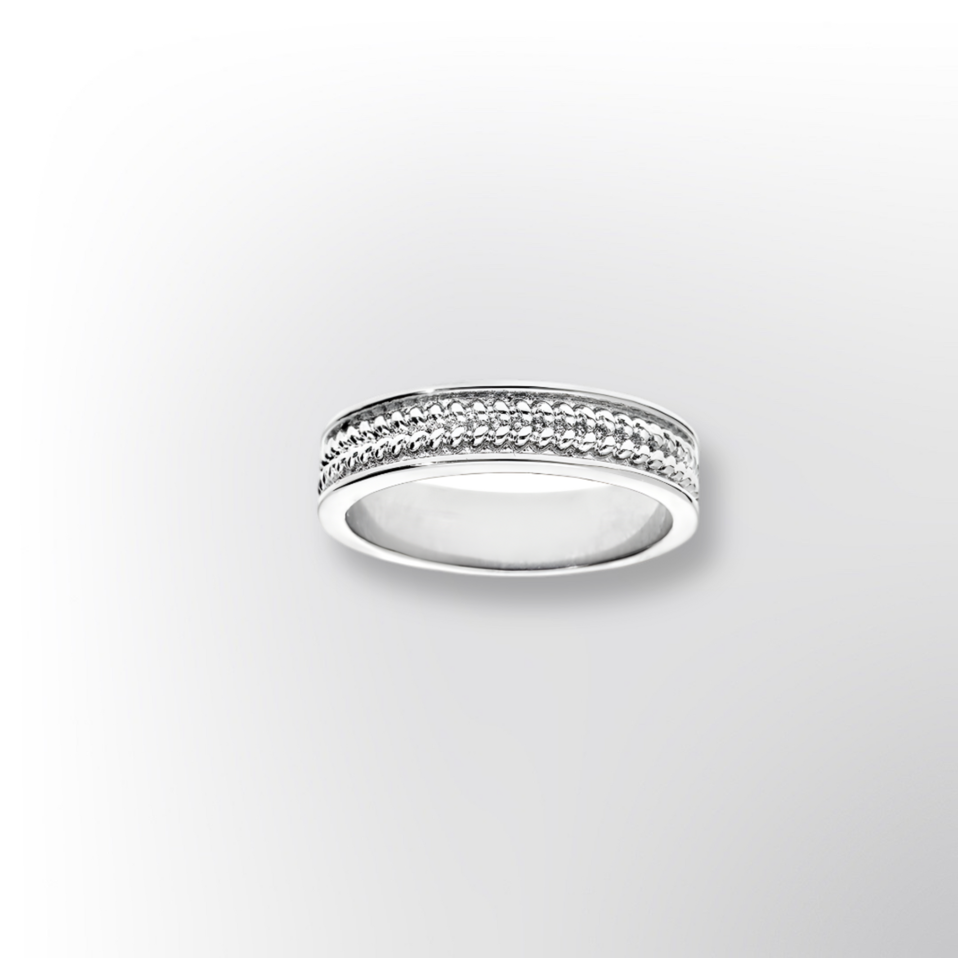 Alliance Argent Rhodié 925/1000e – Ruban Motif Chevron 5mm