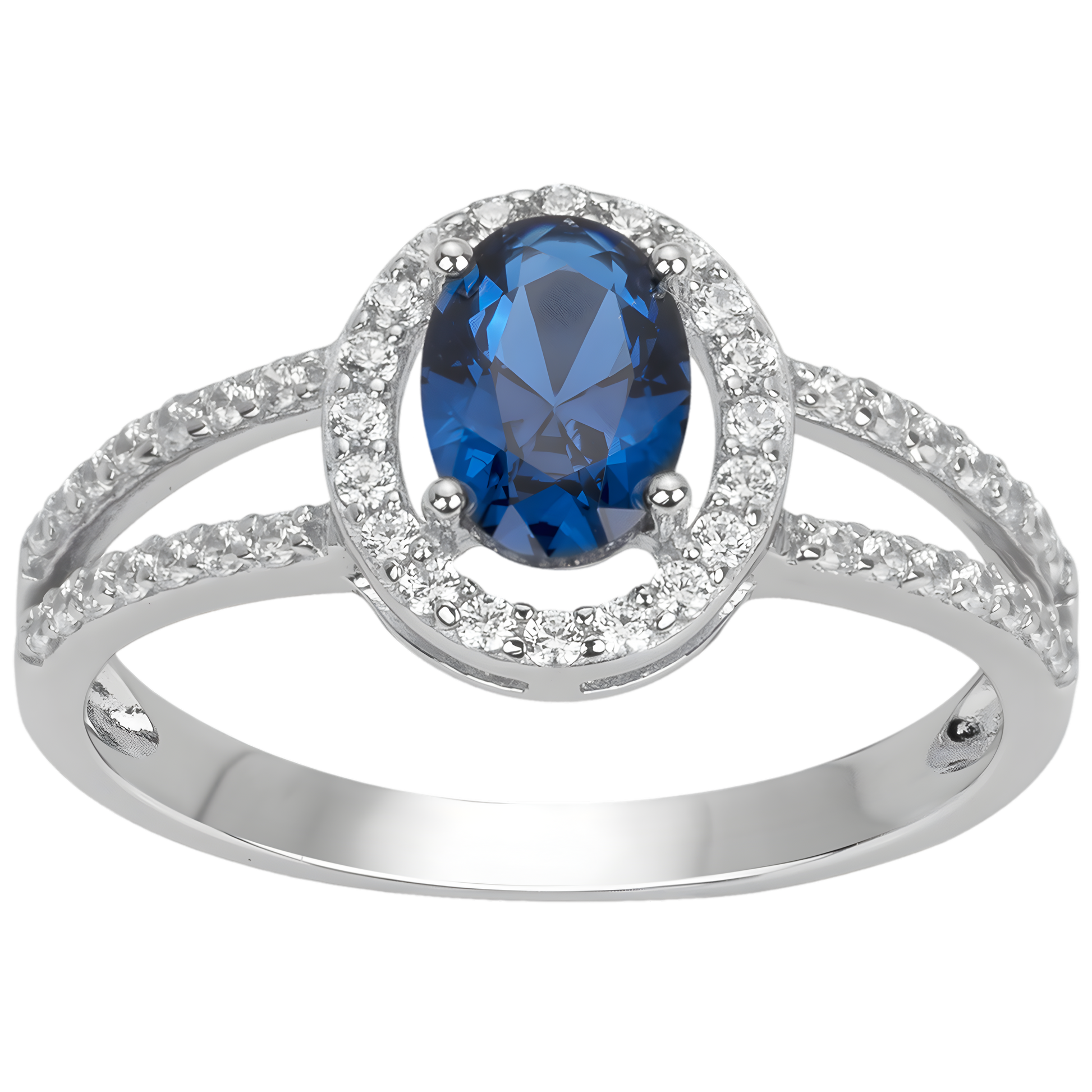 Bague Entourage en Argent 925‰ avec Pierre Bleue et Oxydes Blancs