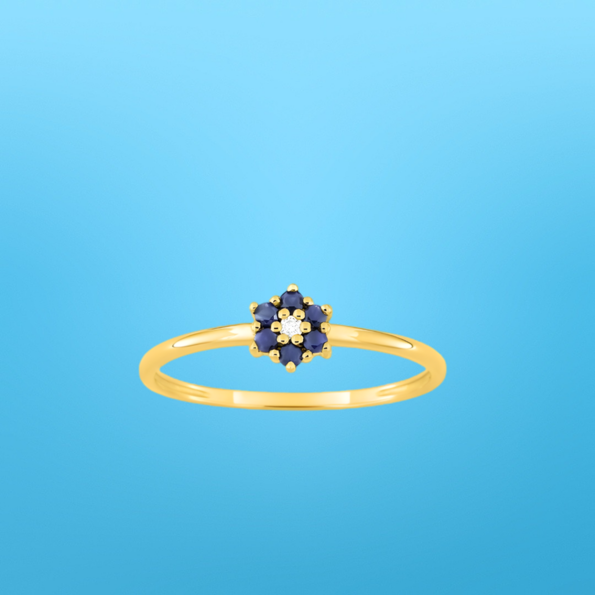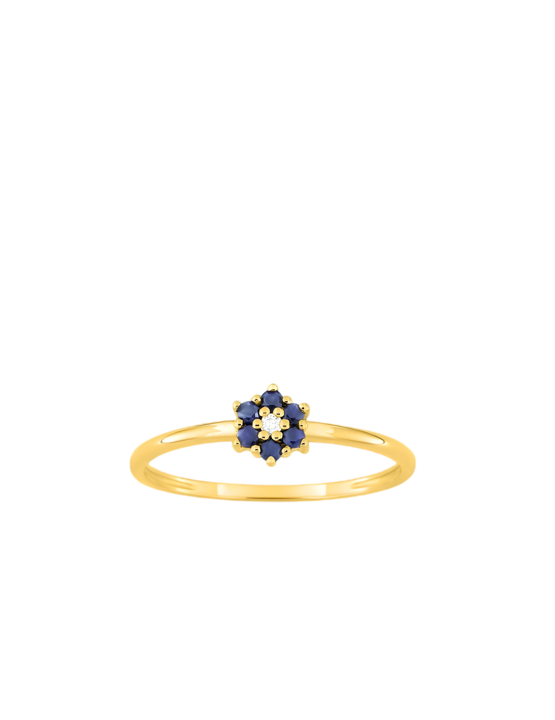 Bague fleur en or jaune 375‰, saphirs et diamant – Un bijou raffiné