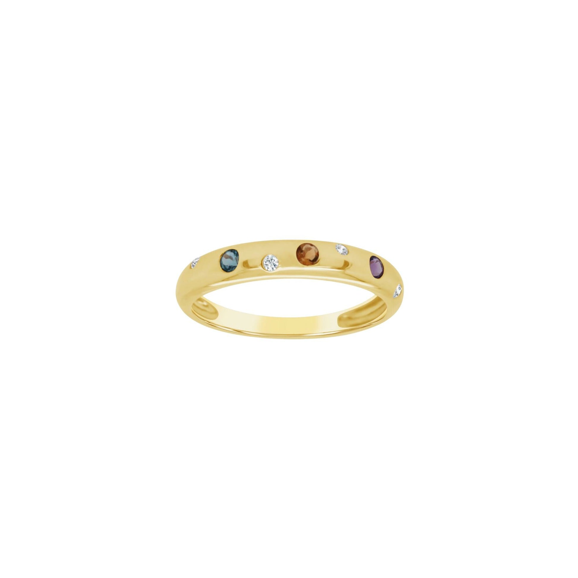 Bague Gringoire en or jaune, améthyste, citrine, topaze bleue et diamants