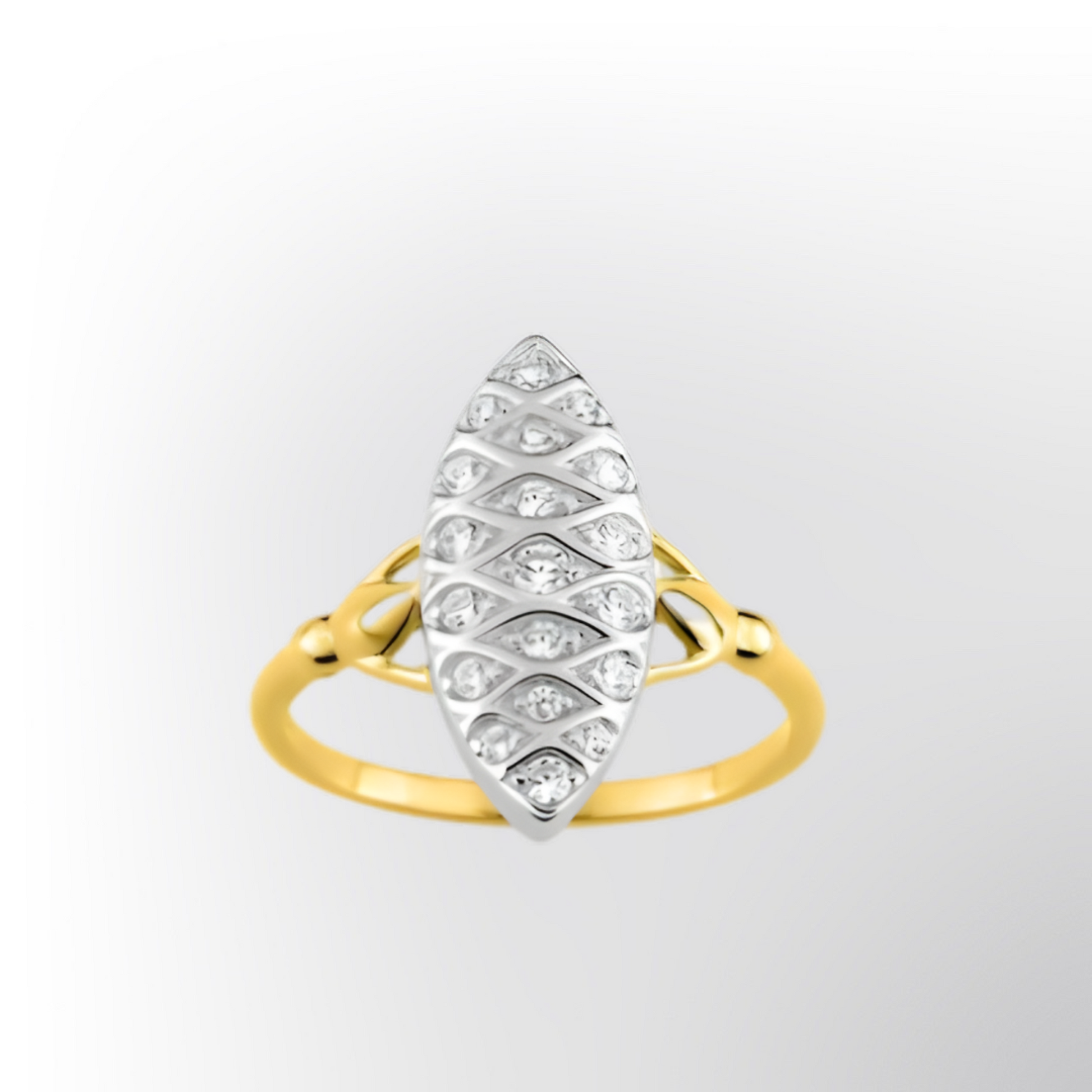 Bague marquise bicolore or 375‰ & oxydes de zirconium éclatants