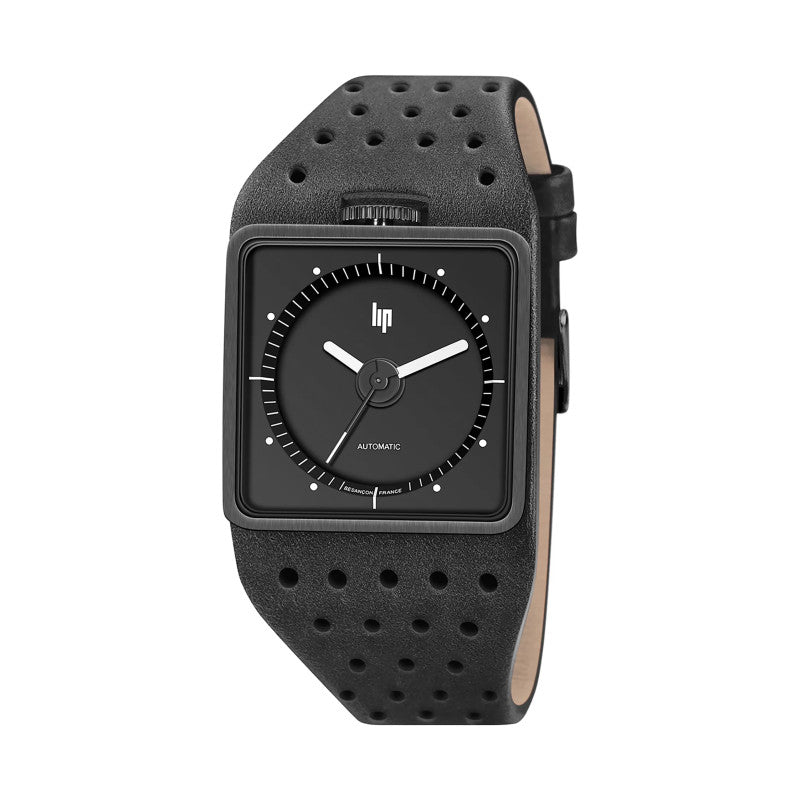 Redécouvrez l’iconique Big TV dans une réinterprétation contemporaine mêlant caractère et élégance. Avec son boîtier carré en acier inoxydable brossé IP noir et son bracelet en cuir perforé, cette montre affirme un style unique et sophistiqué.