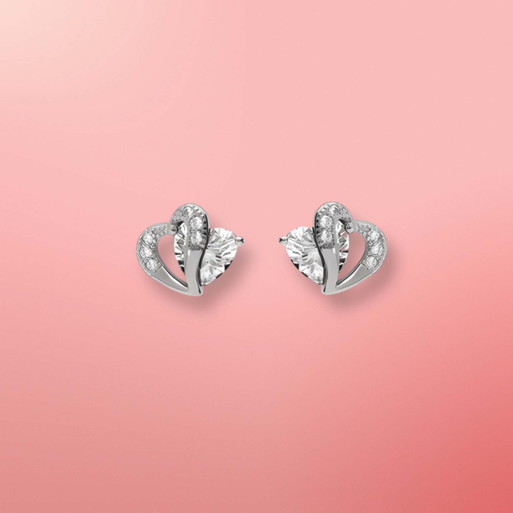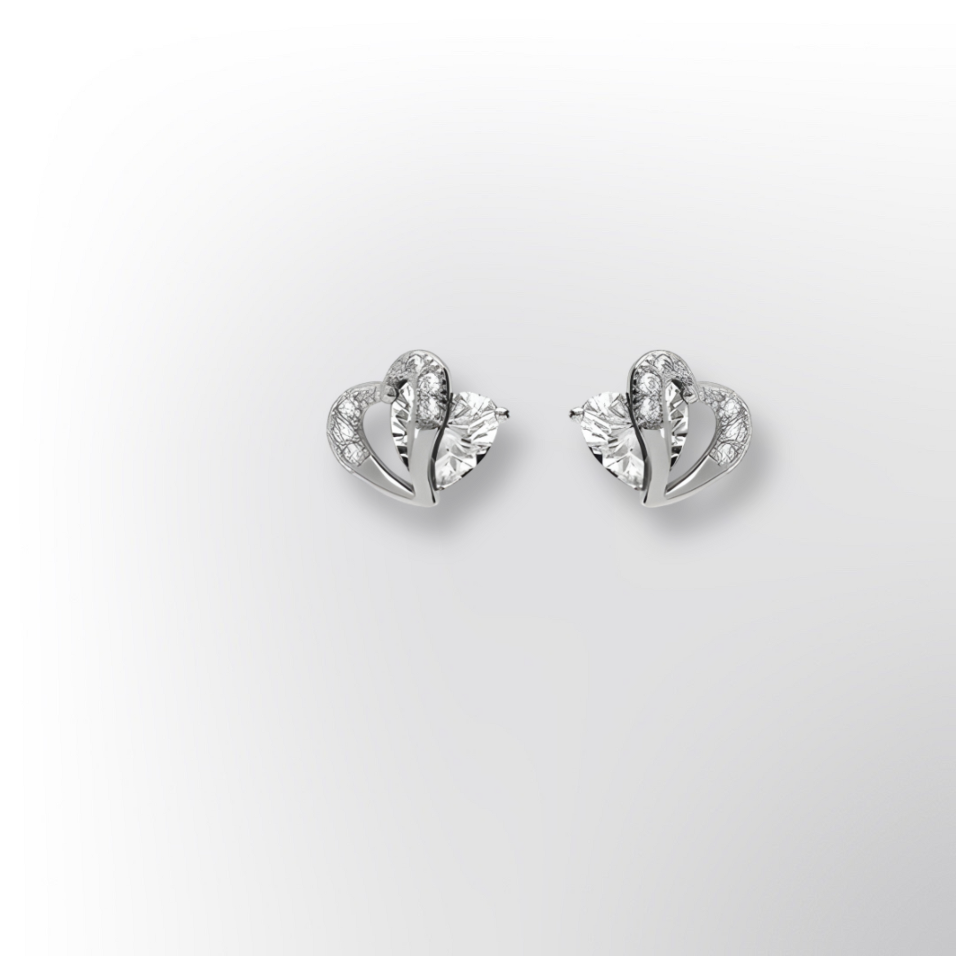 Ajoutez une note d’élégance à votre style avec ces magnifiques boucles d’oreilles tige en argent rhodié. Leur design raffiné associe deux cœurs entrelacés, symboles d’amour éternel, sublimés par des oxydes de zirconium blancs pour une brillance éclatante.