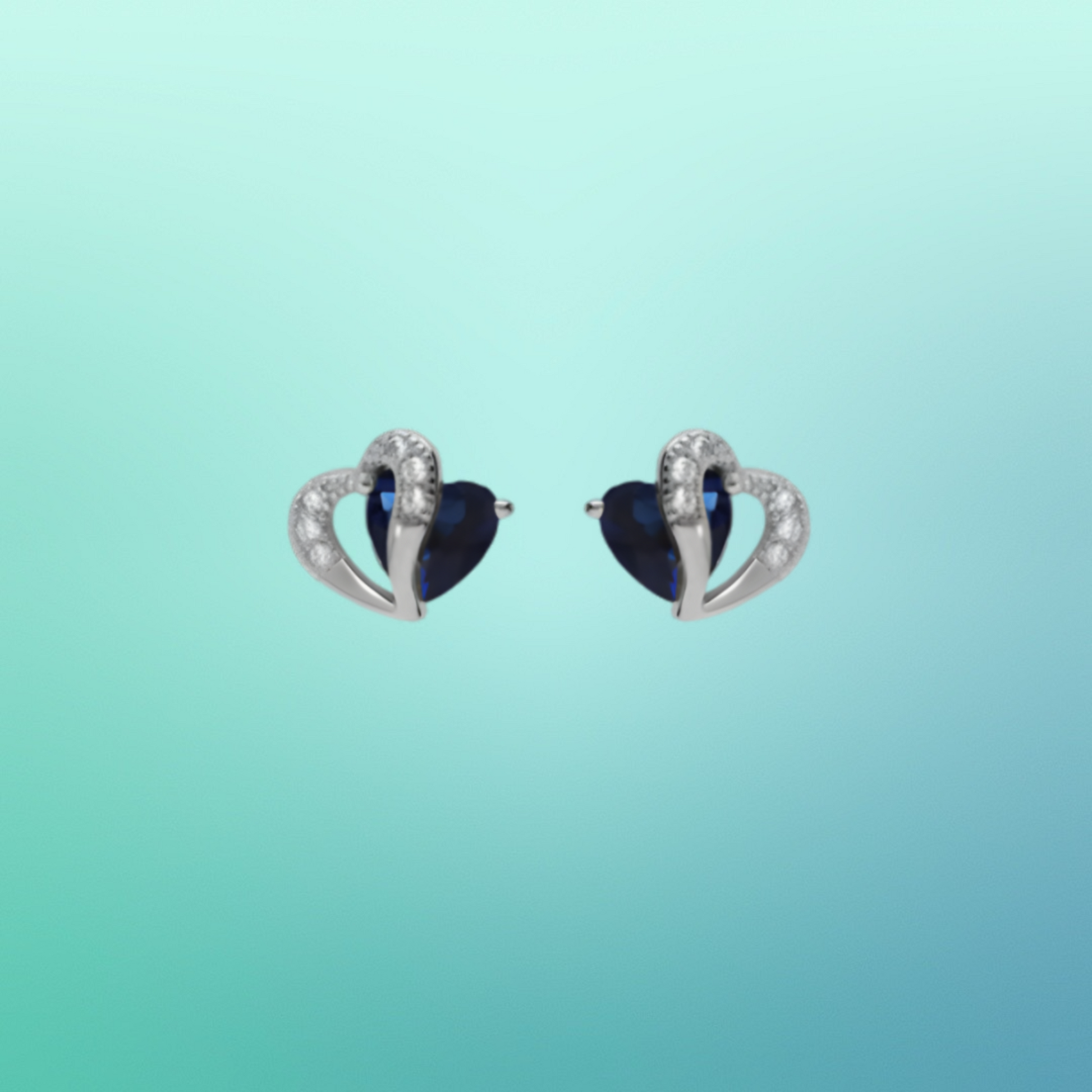 Boucles d’oreilles en argent rhodié – Double cœur, oxydes bleus et blancs