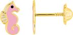 Boucles d’Oreilles Enfant Hippocampe Rose en Or 375 – Système à Vis – 0.25g