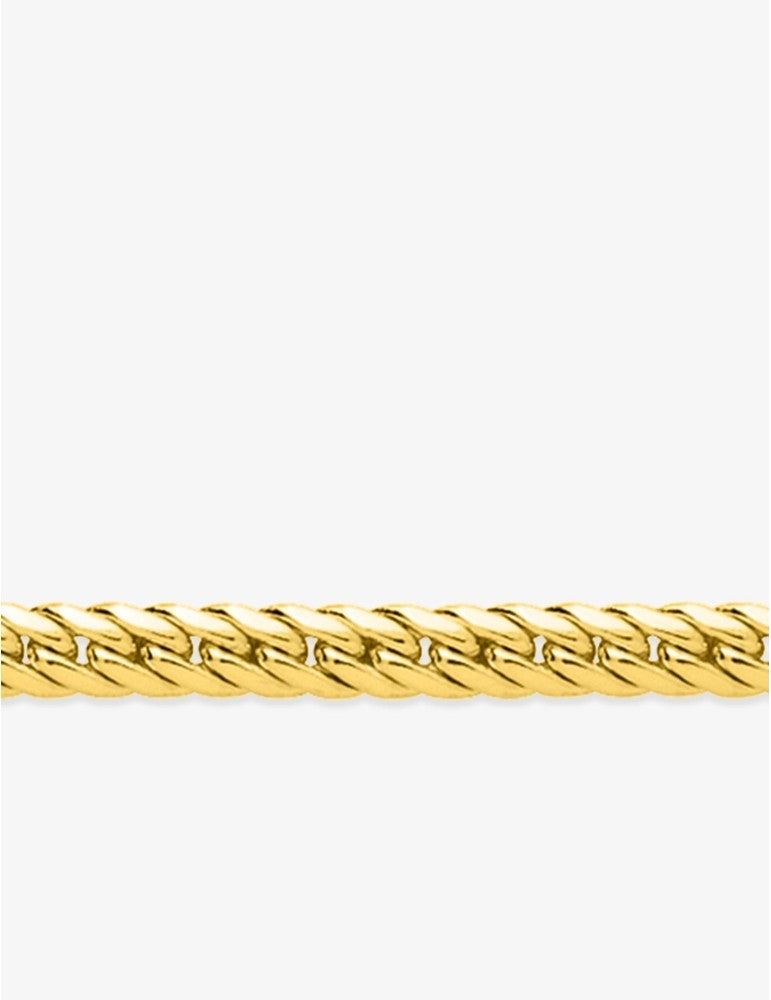 Ajoutez une touche d’élégance à votre style avec ce bracelet en plaqué or à la maille anglaise de 5 mm. Son design intemporel s’adapte à toutes les occasions, du quotidien aux événements plus habillés.