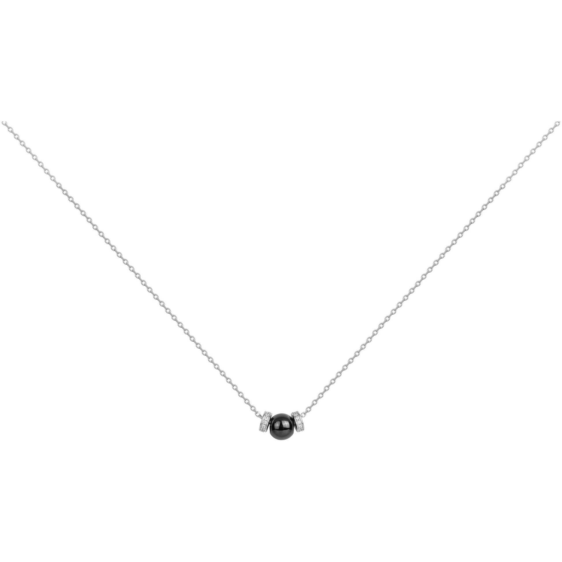 Laissez-vous charmer par ce collier en argent, sublimé par de la céramique noire et des oxydes scintillants. Un bijou alliant sobriété et raffinement pour souligner votre style au quotidien.