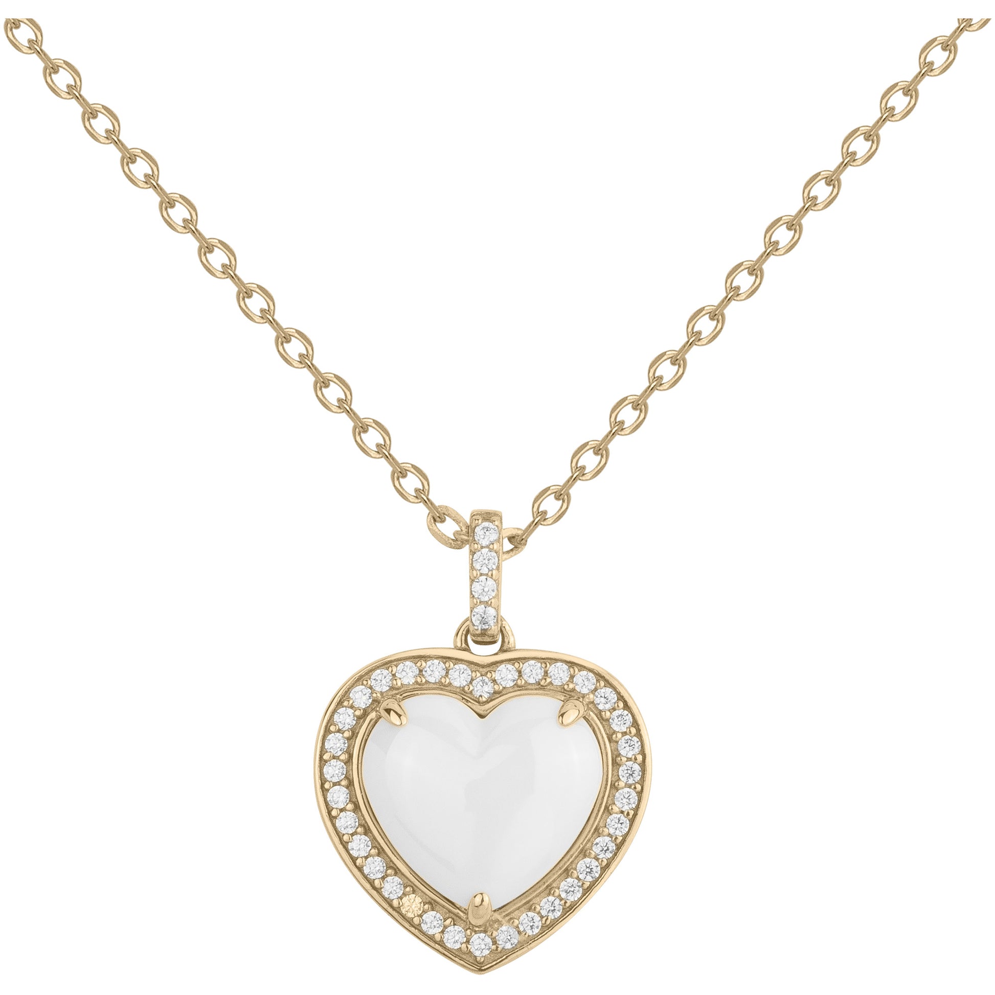 Laissez-vous séduire par ce collier en plaqué or 18K (3 microns), agrémenté d’un pendentif en forme de cœur, orné de céramique blanche et de 38 oxydes étincelants, pour un style à la fois romantique et moderne.