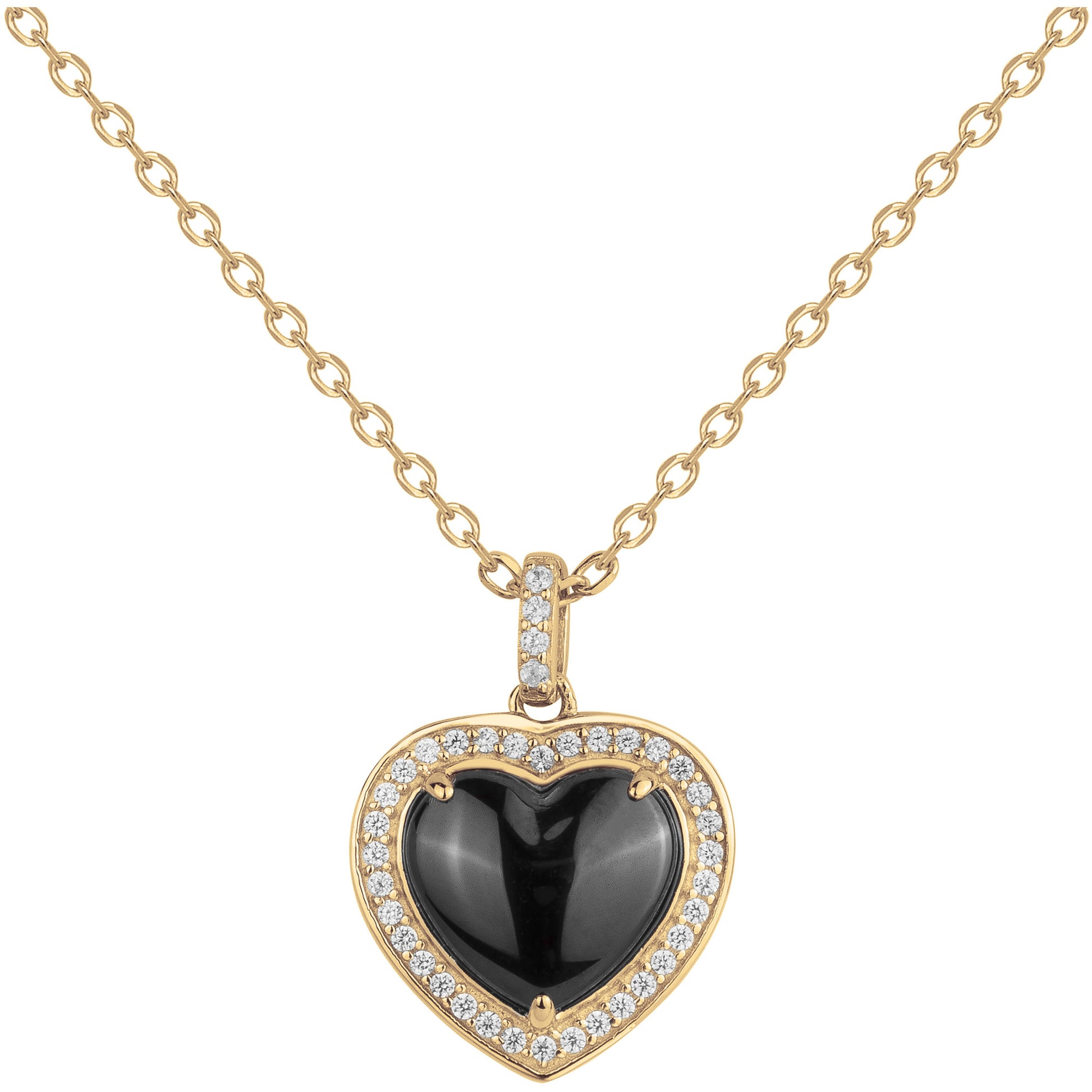 Laissez-vous charmer par ce collier en plaqué or 18K (3 microns), rehaussé d’un pendentif en forme de cœur avec une céramique noire et 38 oxydes étincelants. Un bijou à la fois moderne et romantique.