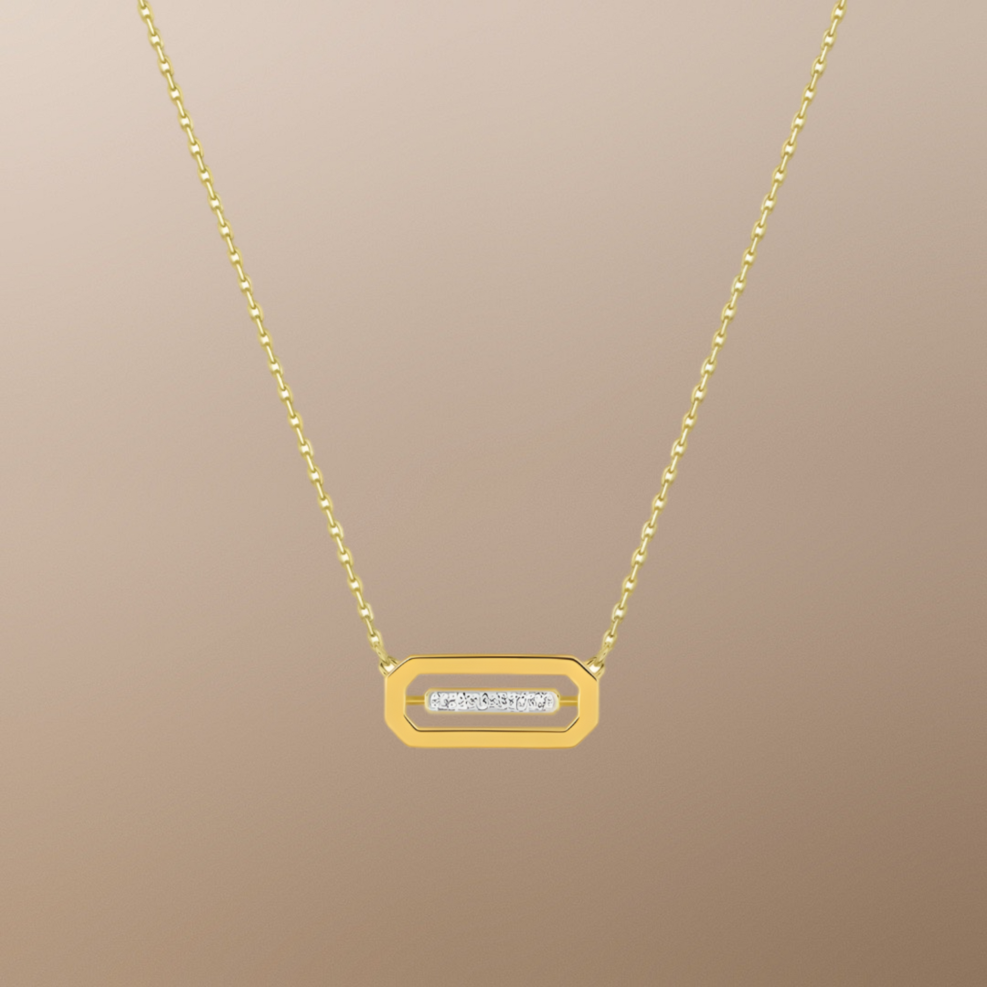 Collier Rectangle en Or Jaune 750‰ et Diamants – Élégance Moderne