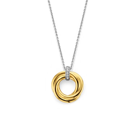 Collier TI SENTO Plaqué Or Jaune avec Pendentif Cercle et Zircon