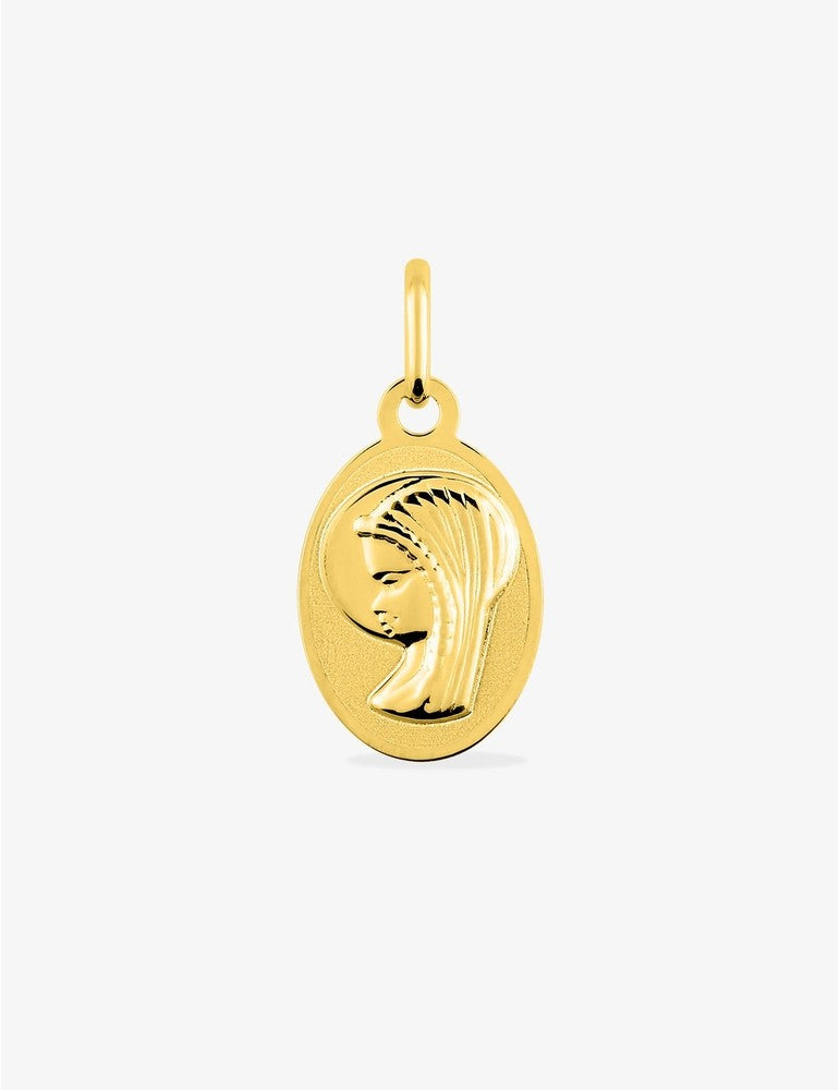 Cette médaille Vierge en or jaune 375‰ (9 carats) représente une Vierge en relief, posée sur une plaque ovale. Avec des dimensions de 10 x 20 mm et un poids d'or moyen de 0,50 g, elle est montée sur une bélière en or et peut être personnalisée grâce à une gravure offerte. Ce bijou précieux et symbolique fait un cadeau idéal, intemporel, pour toutes les occasions spéciales.