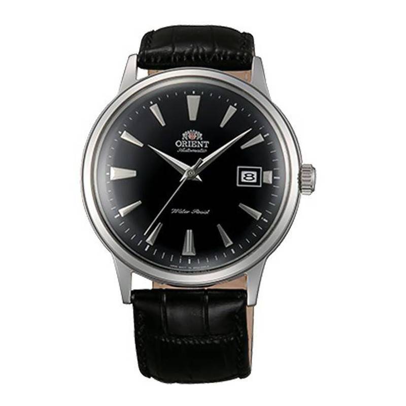 Un cadran rond vient équiper ce modèle. Il vous séduira par son fond noir très sobre et élégant. Sur le pourtour du cadran un fin chemin de fer blanc est complémenté d'index appliqués d'un ton chromé qui facilitent la lecture de l'heure. Au centre, deux aiguilles dauphines dansent au rythme des heures et des minutes. Elles sont accompagnés d'une très fine trotteuse. Un guichet aux bords noirs se loge à 3 heures vous offrant la date. Le logo Orient est positionné à midi pendant que vous retrouverez la mention « Water Resist » à 6 heures.