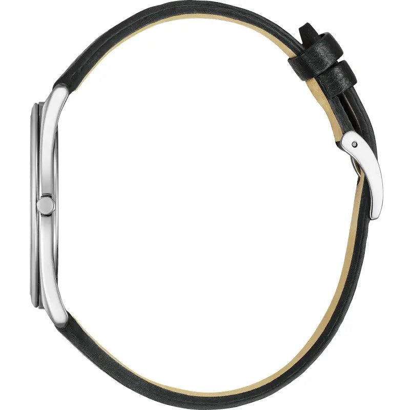 La Montre Suratto Eco-Drive AR3120-16A de Citizen allie design minimaliste et technologie avancée. Son boîtier rond en acier inoxydable de 38,40 mm de diamètre et 4,75 mm d’épaisseur, avec une finition mate satinée, offre élégance et légèreté (32 g), idéale pour un port quotidien raffiné.
