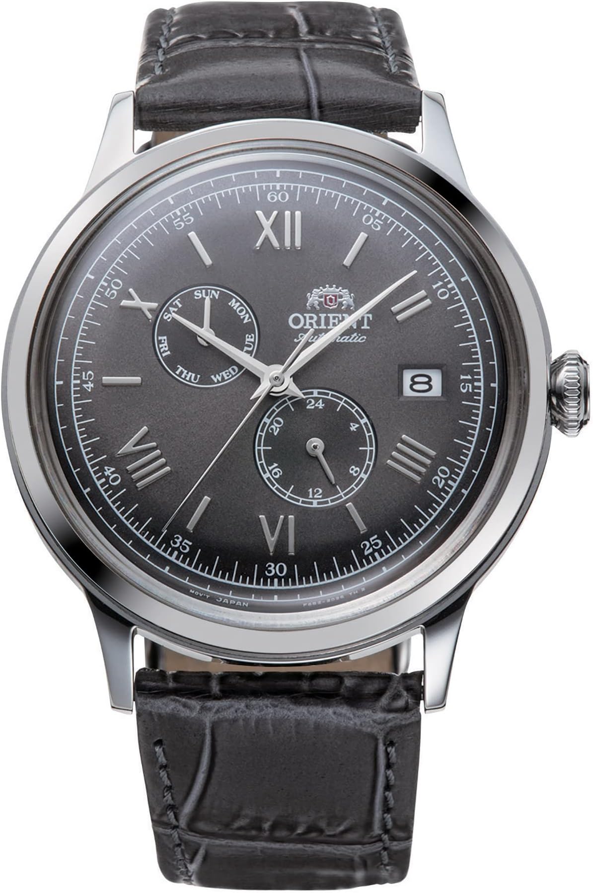 Mouvement : Calibre Orient F6B24 (automatique, remontage manuel, stop seconde)