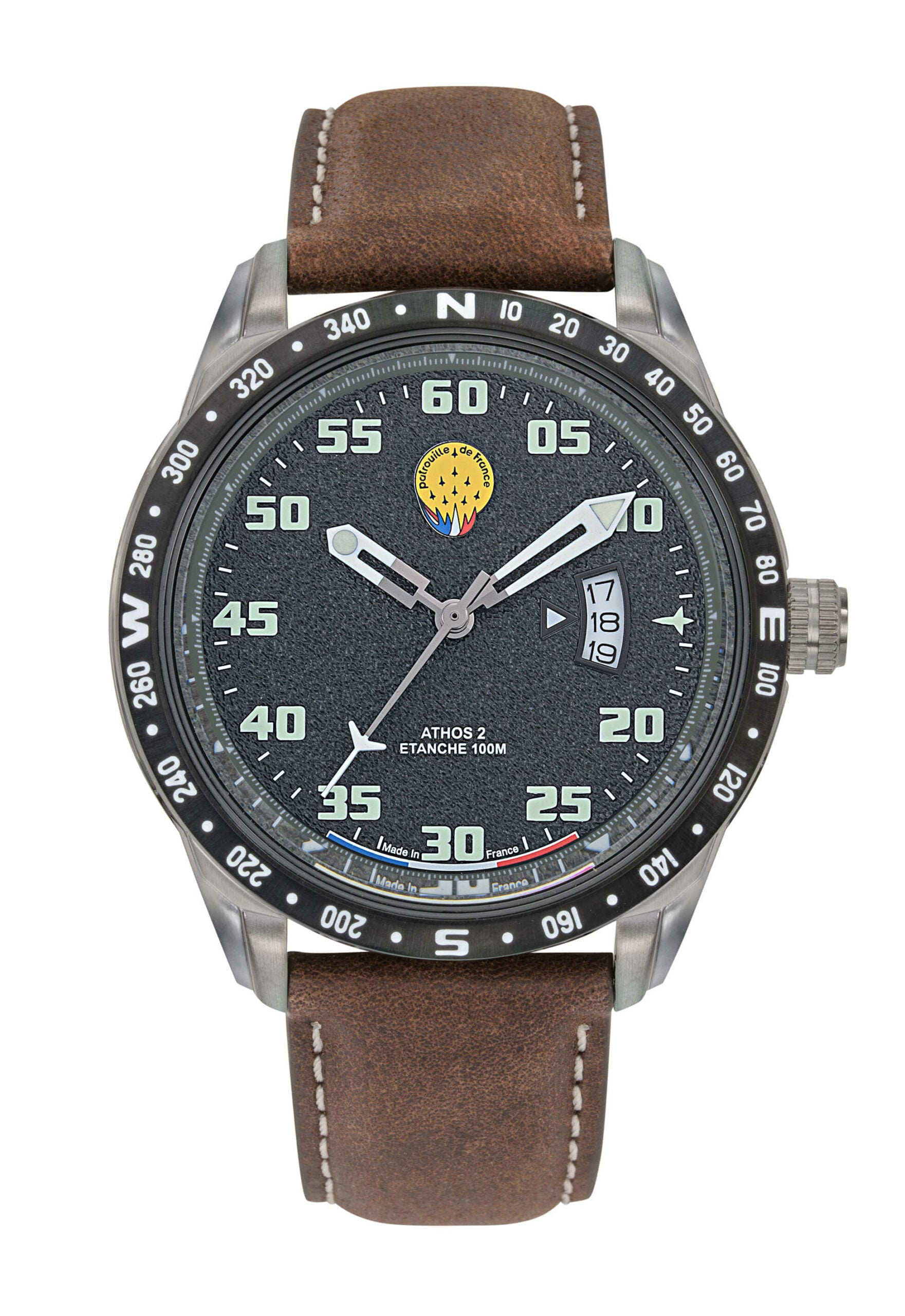 Montre Patrouille de France Athos2 - Cadran Noir & Bracelet Cuir Marron A2-100ID-668125