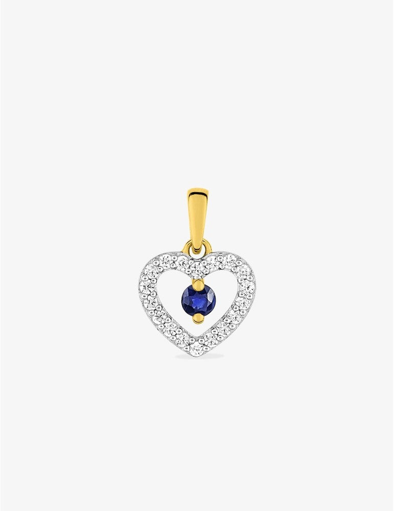 Pendentif cœur or jaune 375‰, saphir et oxydes de zirconium